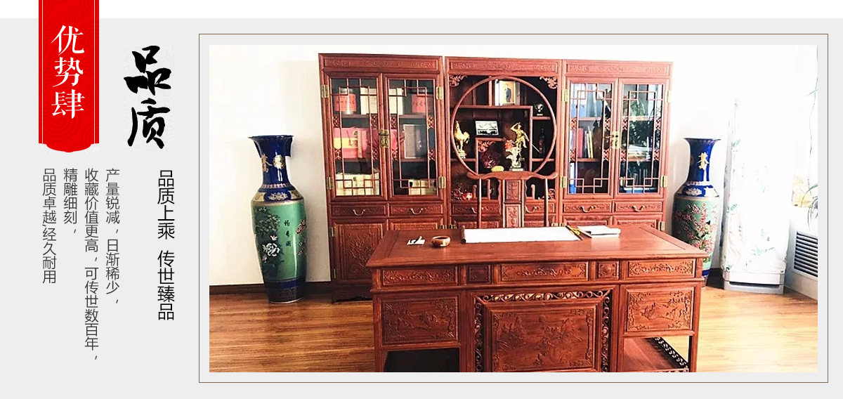 東陽市大聯(lián)福林堂紅木家具廠座落于素有“東方好萊塢”之稱的國家AAAAA級影視旅游基地橫店影視城, 是一家集開發(fā)、設(shè)計、生產(chǎn)、銷售、服務(wù)為一體的綜合型企業(yè)。本公司匯集一批具有豐富生產(chǎn)經(jīng)驗的能工巧匠,具有豐富的紅木家具設(shè)計生產(chǎn)經(jīng)驗。本公司產(chǎn)品主要選用紫檀、花梨、酸枝、雞翅等優(yōu)質(zhì)紅木,并采用純天然蜂蠟飾面。經(jīng)過蒸煮、脫脂、烘干、定型等多道工序嚴(yán)格處理,福林堂紅木始終嚴(yán)格秉承“質(zhì)量第一”、“信譽至上”的經(jīng)營理念,在繼承傳統(tǒng)工藝的基礎(chǔ)上,不斷創(chuàng)新,大力引進(jìn)先進(jìn)家具設(shè)備、烘干設(shè)備,實現(xiàn)了現(xiàn)代生產(chǎn)工藝與傳統(tǒng)表現(xiàn)手法的有機相融。